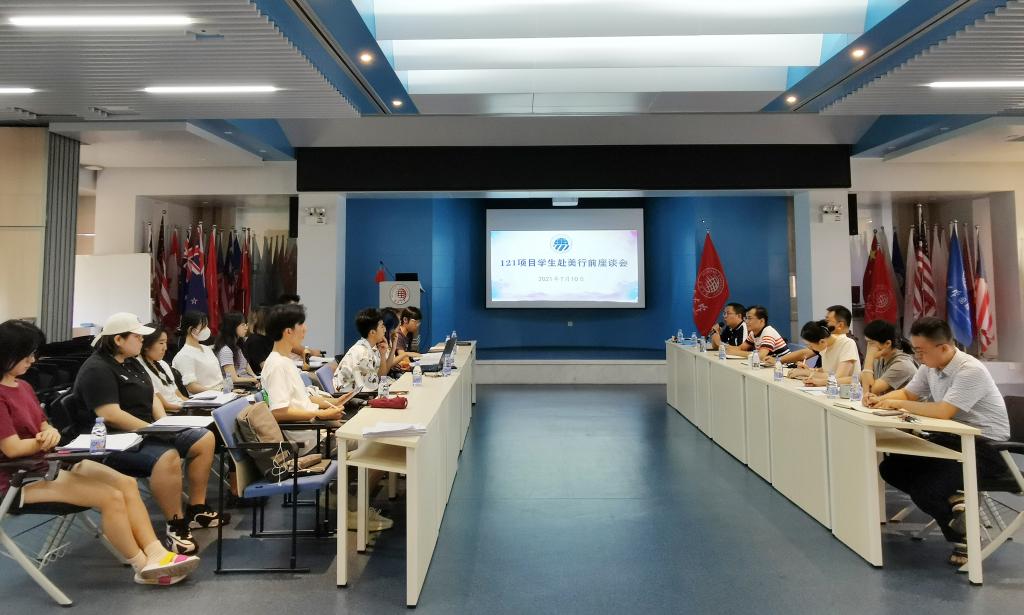 7月10日下午,国际学院在杨思椿科学馆五层多功能厅举行121项目学生赴美行前座谈会。国际学院党委书记谢友福、院长侯志阳、副院长侯祥朝,全英教学部、学工办等教师,以及2019级和2020级参加《中美人才培养计划》121项目的学生参会。